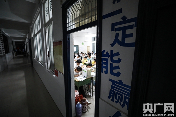 河南省舞鋼市第一高級中學(xué),師生積極備考,圖為一名老師在教室外關(guān)注學(xué)生自習(xí)情況。(央廣網(wǎng)記者 張凱航 攝)