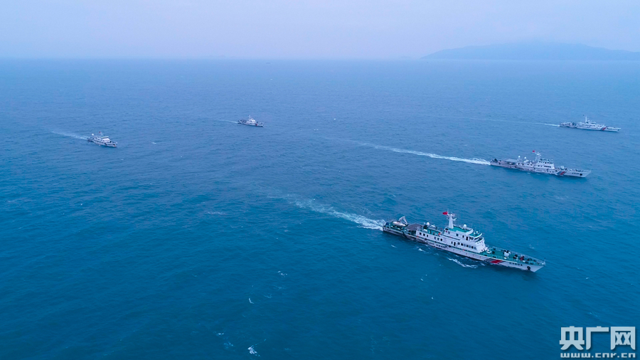 圖為汕頭海警局艦艇艦艇雙橫隊航行(央廣網發 汕頭海警局供圖)