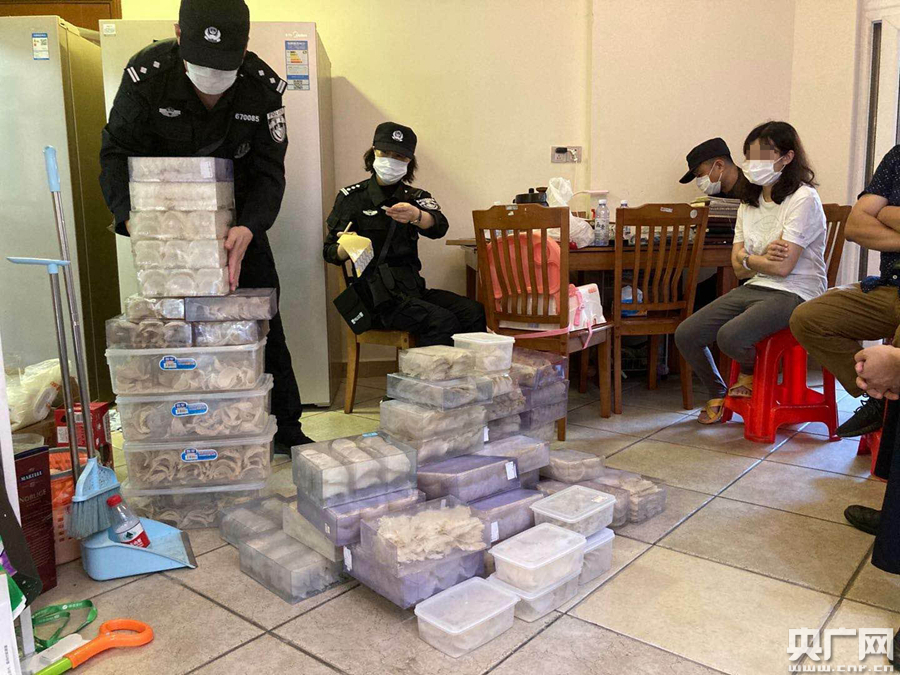 圖為湛江海關(guān)查辦燕窩特大走私案查扣走私燕窩現(xiàn)場 胡真 攝