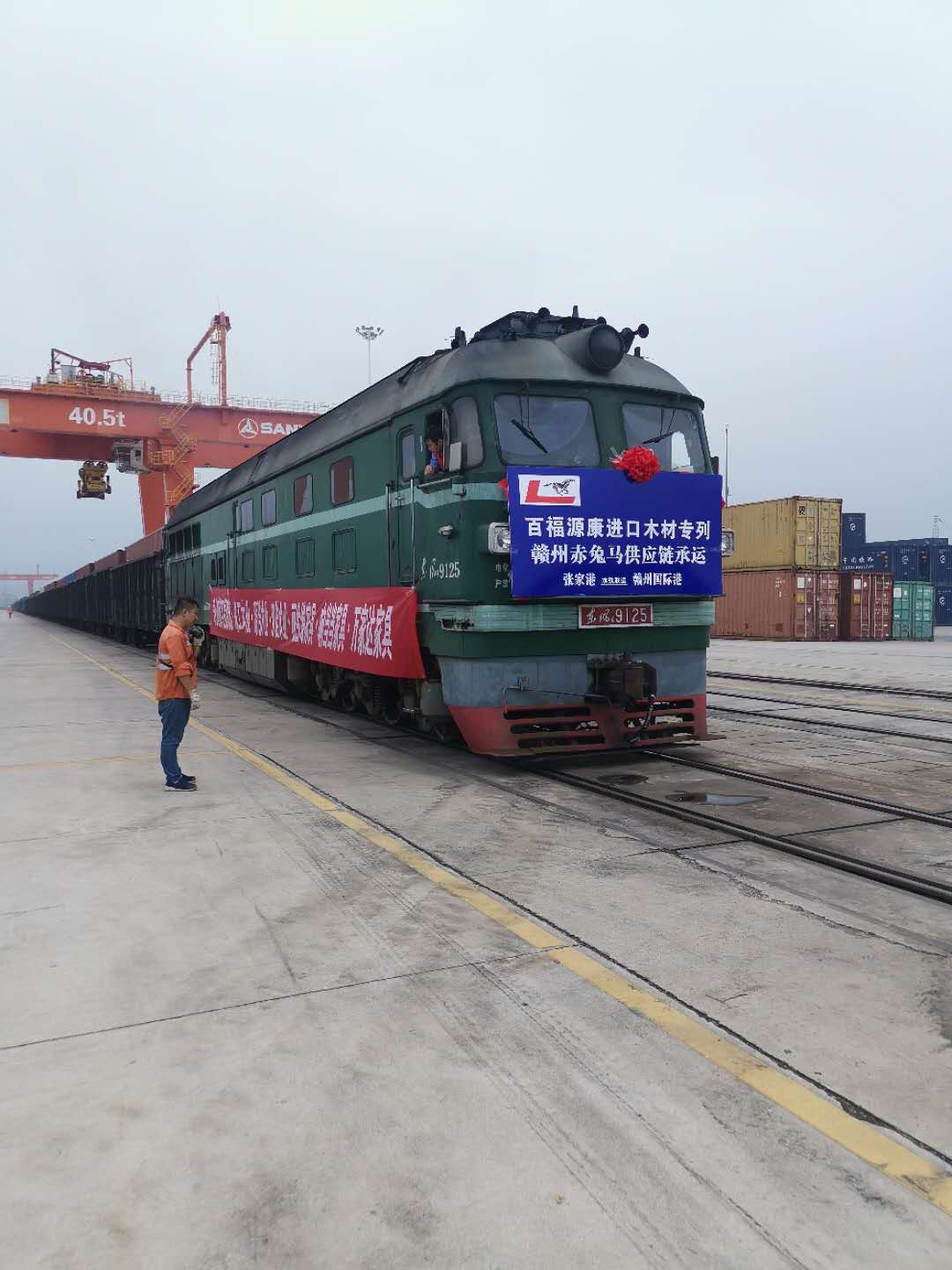 央廣網(wǎng)贛州9月29日消息(記者謝元森 通訊員沈漢華)9月29日上午,張家港至江西贛州國際陸港首列木材專列順利抵港。該趟班列滿載40個(gè)集裝箱,皆為南康林森泰家具有限公司等本土家具企業(yè)通過張家港進(jìn)口的木材,貨物從張家港出發(fā)走水路經(jīng)九江港后通過鐵路運(yùn)輸?shù)诌_(dá)贛州國際陸港,是贛州國際陸港穩(wěn)步擴(kuò)大合作范圍新開拓的鐵海(水)聯(lián)運(yùn)新渠道。