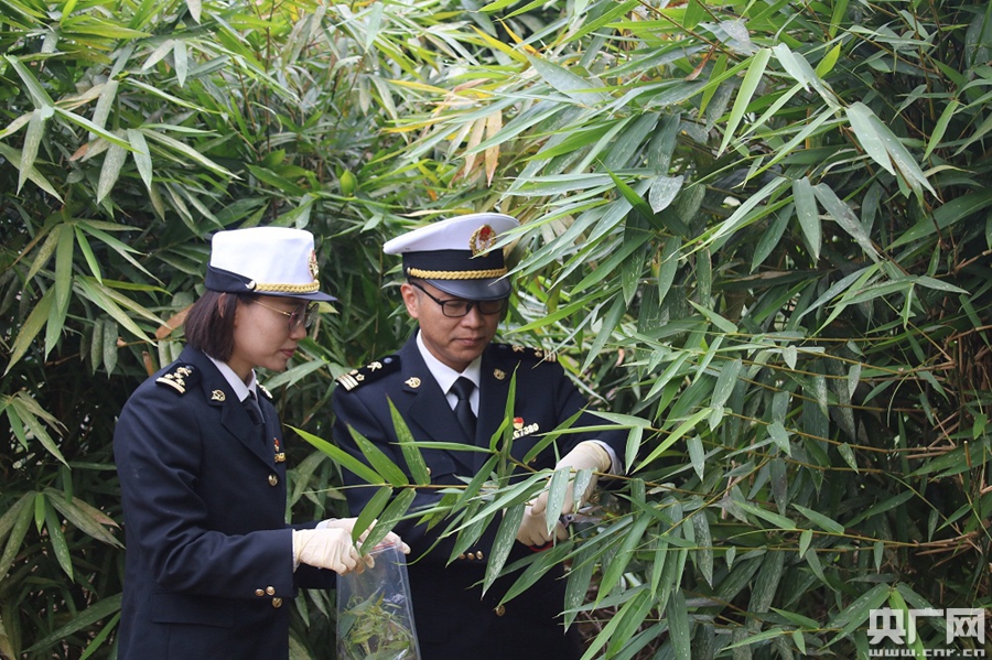 徐蕾和同事用剪刀抽取長(zhǎng)度約50厘米連枝帶葉的竹枝,放入取樣袋,“我們需要抽取約1公斤樣品,送廣州海關(guān)技術(shù)中心進(jìn)行農(nóng)殘項(xiàng)目檢測(cè)!