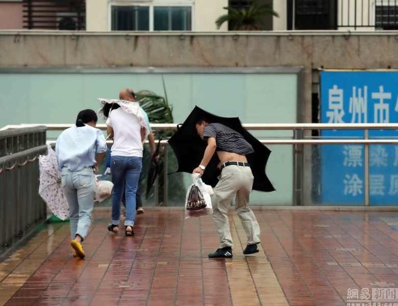 據(jù)中國天氣網(wǎng),今年第13號臺風(fēng)“蘇迪羅”于8月8日22時10分前后在福建莆田登陸。預(yù)計它隨后將進入我國內(nèi)陸,受其影響,臺灣、福建、廣東、江西、湖北、上海、浙江、安徽、江蘇等9省市有大范圍強風(fēng)暴雨。圖為2015年8月8日,福建晉江,臺風(fēng)“蘇迪羅”來襲,市民撐傘艱難前行。 東方IC