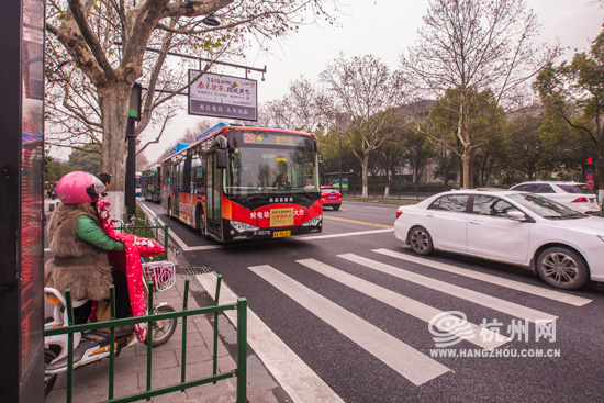 “上車時(shí)包放在前面,手機(jī)拿在手上,請(qǐng)把扶手扶好。”“請(qǐng)給老人、小孩等有需要的乘客讓個(gè)座。”“武林門站站到了,可以換乘290路、155路。”“大包行李請(qǐng)往后拿。”“下車時(shí)行李包不要忘記。”