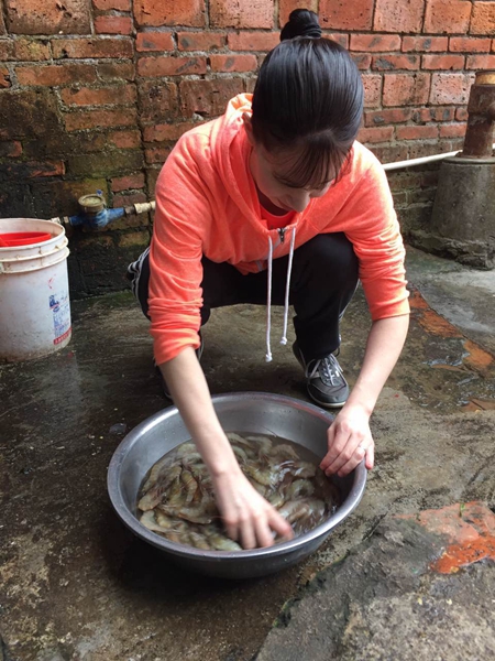接下來的幾天,我們都非常繁忙。每次我們回到老家,都要去他家租用的島上幫忙。這個(gè)小島叫南屏島,方圓10公里,無人居住。只有養(yǎng)殖魚蝦的漁民們會(huì)前往該島。除了魚蝦,島上還有很多其他動(dòng)物,如野山羊、牛、雞和貓。此外島上還有幾處小棚屋,方便漁民們?cè)趰u上過夜、休息或做飯使用。