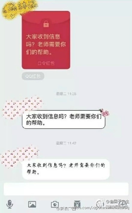 網帖中還上傳了數張疑似該老師與學生的QQ聊天截圖,其中的一張截圖中的對話道出了老師“眾籌”買車的原因:“新的一年又開始了,萬事待發,你們更是前程似錦。老師心里有個念頭已經很久了,小孩也快四歲了,每次回家都路途遙遠,要轉幾次車,你們師母和小孩更是暈車嚴重,有時一路吐回家,看看他們如此痛苦,真是愧為男人。∷裕瑩碛幸惠v車是多么的迫切。你們也知道老師那些工資維持生活都很艱難,更不敢有什么想法,也不好向父母親人求助,都三十多歲了,真的羞于啟齒!所以,雖然也很不好意思,但是也只能跟你們說說我的想法了:大家如果有能力的,可不可以慷慨解囊一兩百塊,等你們哪天結婚了,再給你們打紅包怎么樣?但愿你們能幫幫你們的老師吧!