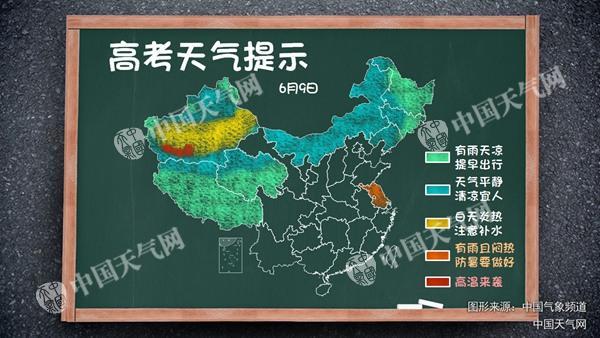 9日,強降水范圍向東擴大,西北地區(qū)東南部、四川盆地、黃淮西部和南部、江漢、江淮大部、江南北部、云南西部等地有中到大雨,其中,陜西南部、四川東北部、重慶北部、湖北北部、河南南部、安徽西北部等地的部分地區(qū)有暴雨,局地有大暴雨(100~150毫米);上述地區(qū)局地并伴有短時強降水、雷暴大風等強對流天氣。不過,上述有強降雨影響的區(qū)域9日高考已經(jīng)結(jié)束,仍有高考的地區(qū)將不會受到強降水的影響。