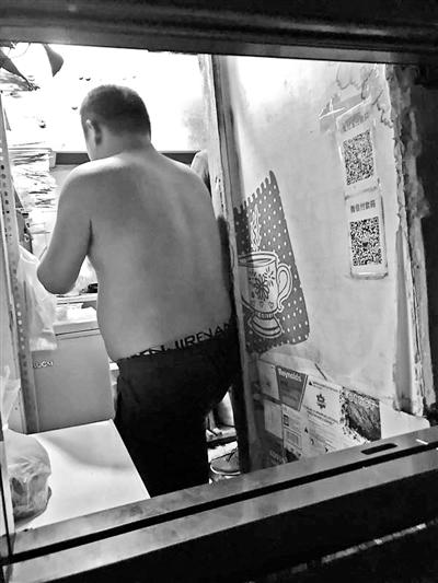 北青報記者觀察發現,這家占地約5平方米的狹小店內,擺放有冰柜、微波爐、放著串好的肉串、蔬菜的多層架子。地上油污、紙質訂單、一次性塑料袋、空瓶遍布,微波爐、燒烤架上也布滿油漬。而窗口外的一輛電動車后座,放著一塑料箱串好的生肉串,肉串周圍有蠅蟲在飛。