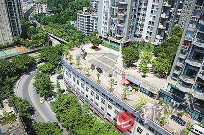 記者探訪:這條路實為南岸區(qū)南濱路聚豐江山里小區(qū)道路,位于該小區(qū)3棟附近。重慶晚報記者看到,屋頂公路寬約10米,與樓下往彈子石方向的主干道海棠溪新街呼應(yīng),靠樓的一側(cè)是小區(qū)車庫出入口,遠觀有種樓上樓下皆有路的感覺。小區(qū)一位保安表示,這條路的下面是小區(qū)的車庫,車庫下是商鋪。