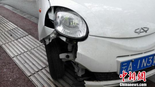 圖為肇事的共享電動汽車。 鐘欣 攝