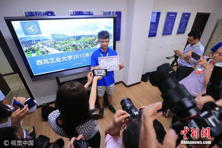 2017年7月4日下午5時,中國第一封AR錄取通知書從陜西西北工業大學發出。圖片來源:視覺中國