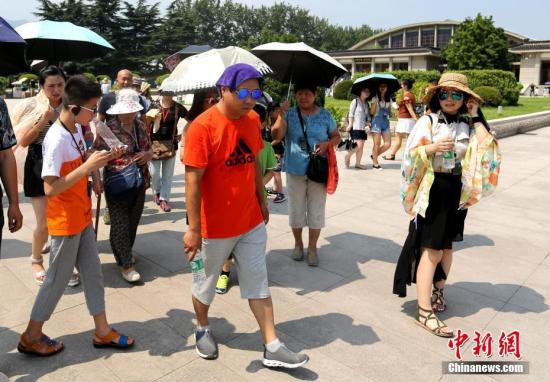 7月21日,上海街頭的行人以各種辦法遮擋炙熱的陽光。當日12時22分,上海中心氣象臺發布今夏首個高溫紅色預警,中心城區最高氣溫將達40℃。 中新社記者 湯彥俊 攝