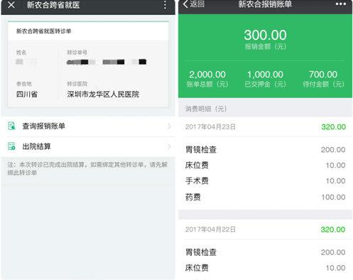 據了解,微信新農合支付使用起來非常方便,只需要在微信中按照要求填寫個人信息、參合地和轉診單號,就可以成功綁定轉診單。住院期間可以每天查看費用明細及報銷金額,出院時通過微信支付混合結算,實現在線上新農合跨省(異地)就醫(yī)聯(lián)網實時結報。 原來需要跨越上千公里耗時1-3個月甚至更久的報銷路,現在只需在微信操作1分鐘。