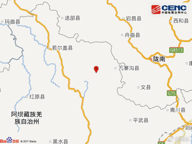 央廣網北京8月8日消息(中國交通廣播記者 梅秭明) 中國地震臺網正式測定:8月8日21時19分在四川阿壩州九寨溝縣(北緯33.20度,東經103.82度)發生7.0級地震,震源深度20千米。