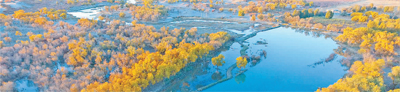 金秋時(shí)節(jié),內(nèi)蒙古自治區(qū)額濟(jì)納旗胡楊林在陽(yáng)光中迸發(fā)出金色的魅力。 新華社發(fā)
