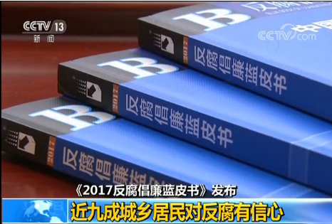 央視網消息:昨天,中國社科院中國廉政研究中心在京發布《2017反腐倡廉藍皮書》, 對十八大以來的全國黨風廉政建設和反腐敗工作進行了全面梳理,分析了社會認同和期待。調查顯示,我國近九成城鄉居民對黨風廉政建設和反腐敗斗爭有信心。