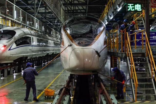 對兩段車頭部位、轉向架等進行再次刷洗。