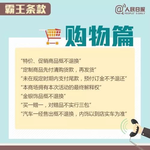 今年政府工作報告指出,“對各類侵害消費者權益的行為,要依法懲處、決不姑息”。今天就是3·15“國際消費者權益日”了,“先簽收后驗貨”“禁止自帶酒水”“特價、促銷商品概不退換”…這些其實都是霸王條款,遇到果斷投訴!為自己權益,必看!