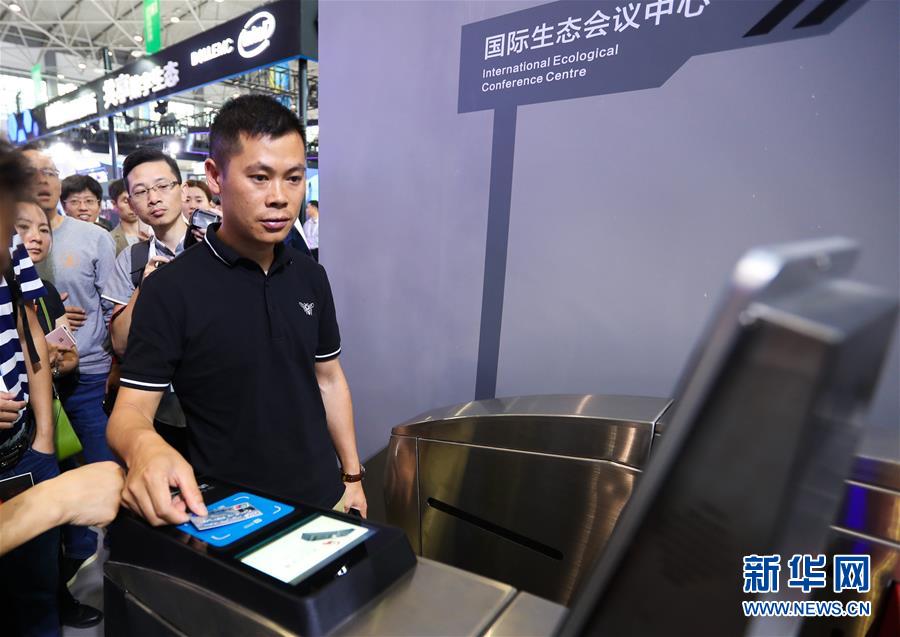 在貴州省貴陽市舉行的2018中國國際大數據產業博覽會上,參觀者在體驗支付寶公交刷卡進站系統(5月26日攝)。 新華社記者 劉續 攝
