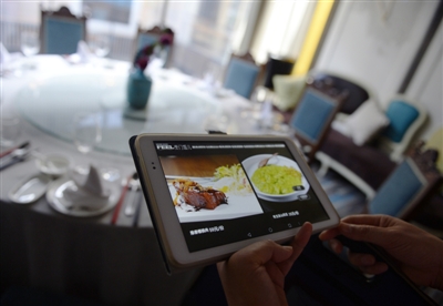 第二天晚上,劉先生一行十余人來到餐廳二樓包廂用餐。服務員拿來了一個IPAD,說直接在上面的菜單點餐。開始點餐時,劉先生卻發現IPAD上的菜單和以往大堂的菜單不一樣。“菜品基本還是那些。但問題主要是價格。大部分菜品都比外面大堂的菜單上貴,大概貴了十元到四五十元不等。”