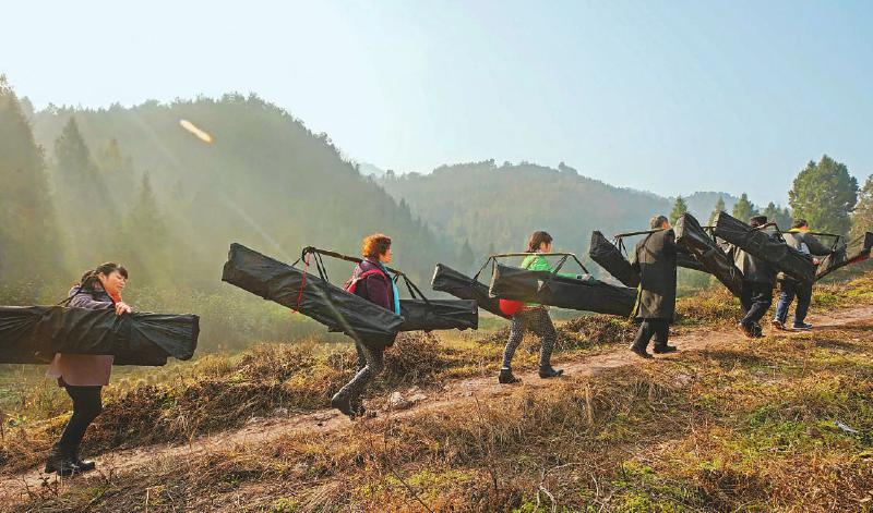 “扁擔學!绷x務宣傳隊進村宣傳黨的十九大精神