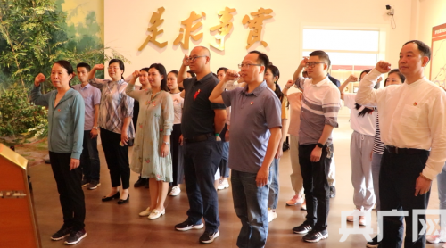 最后,全體黨員面向黨旗,重溫入黨誓詞,在鏗鏘有力的莊重誓言中感悟中國共產(chǎn)黨人的初心和使命,為共產(chǎn)主義事業(yè)矢志奮斗。