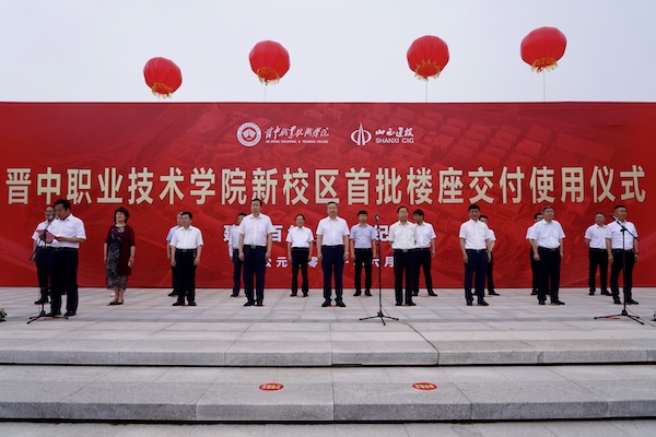在當(dāng)天的交付使用儀式上,晉中市委書記吳俊清宣布首批樓座正式交付使用。晉中市住建局局長游躍軍向晉中職業(yè)技術(shù)學(xué)院黨委書記吳文勝遞交竣工標(biāo)志牌并交接鑰匙。