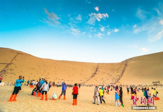 鳴沙山月牙泉景區游人如織 王斌銀攝