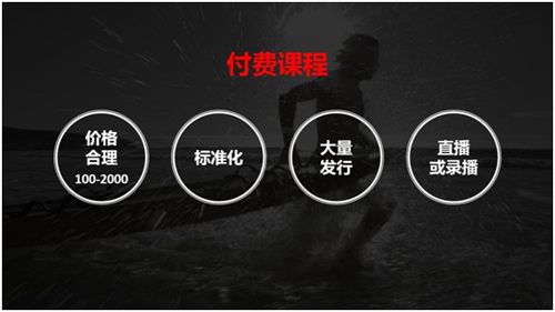 最后一點跟大家分享的是,近一年多,出現了一個新的產品模式,我們可以稱它為“內容驅動的在線教育模式”。這個模式是以定價相對合理、標準化、大量發行的付費課程為核心的,直播課和錄播課的形式都有,并附帶有一系列內容周邊產品,比如高質量的教輔產品、相配套的APP等。