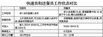 劉明現在的月收入差不多在5000元左右,每天需要送20多單,算下來,劉明每單的收入可以達到近10元錢,遠高于快遞一單的收入!皠側胄械臅r候每天能送五六十單,現在招的人多了,每個人送的單就少了!