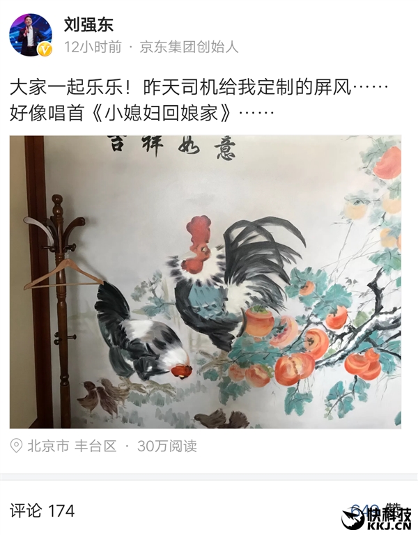 今天上午,東哥在微頭條分享最新動(dòng)態(tài),這是“昨天司機(jī)給我定制的屏風(fēng)……好像唱首《小媳婦回娘家》……”