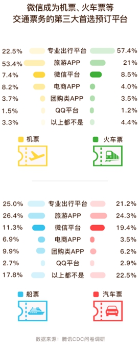 微信平臺已成為交通票務的第三大首選平臺