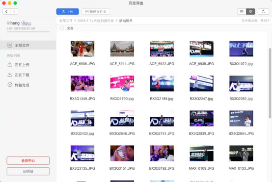 此外,為了防止資料遺失,我還將近期拍攝的作品上傳到百度網(wǎng)盤(pán)進(jìn)行了資料備份,本來(lái)還擔(dān)心資料太多害怕內(nèi)存不夠,后來(lái)看見(jiàn)普通用戶擁有2048GB的存儲(chǔ)容量后我就放心了。所有資料,無(wú)論是大文件、文件夾還是壓縮文件包均可通過(guò)百度網(wǎng)盤(pán)Mac版的客戶端直接進(jìn)行上傳,上傳的平均速度依舊十分穩(wěn)定和流暢。