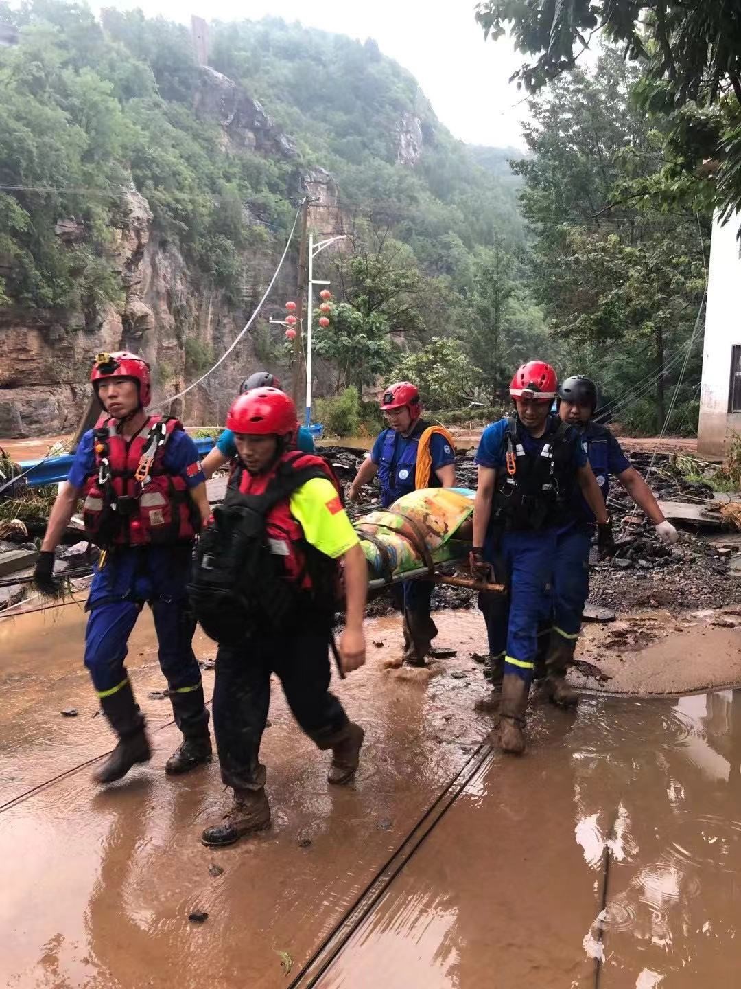 神鷹救援隊在河南滎陽緊急轉移群眾和傷者。