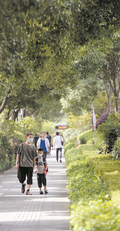 如今城區人行道綠樹成蔭。