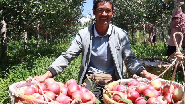 今年胡秀洪家的果園喜獲豐收,能讓越來越多的人品嘗到新鮮脆甜的“鹽源蘋果”。