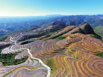 在大方縣雨沖鄉,由恒大集團幫扶援建的油用牡丹套種皂角基地已頗具規模。層層梯田向山頂盤繞,蜿蜒如春螺,披嵐似云塔,賦予荒山生命的律動。