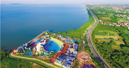 圖為美麗的濱湖大道,蜿蜒伸向水天相接的遠方